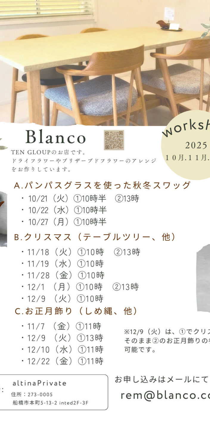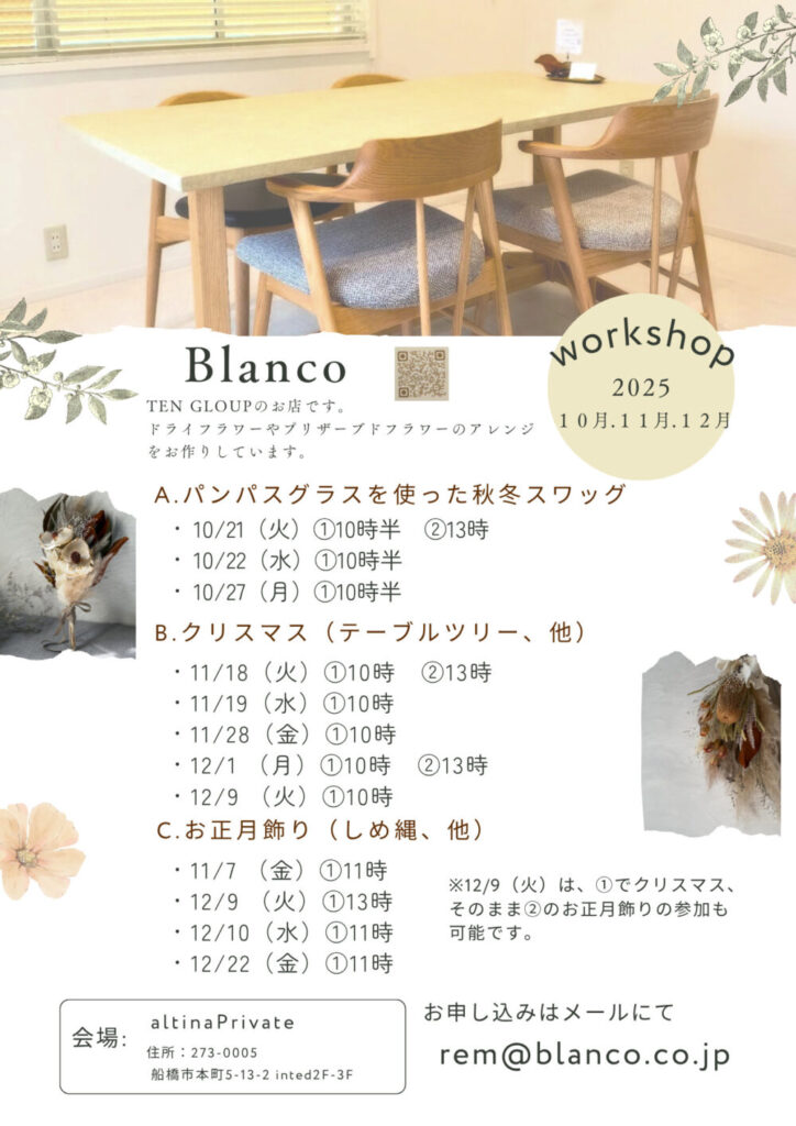 TENGROUPにはスワッグやドライフラワーなどを取り扱うお花屋さんblancoがあります。